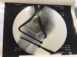 Fourteen hours after I first fell, we arrived at the hospital. Everyone was exhausted and after an initial assessment, it was decided that it would be best if we could get ourselves home to have the leg treated. It was a week before we could get in to see the surgeon. I had the strongest feeling that as soon as the surgeon saw the leg, he would want to operate and that would be me wiped out from being able to think. Not that I was my sharpest while waiting.