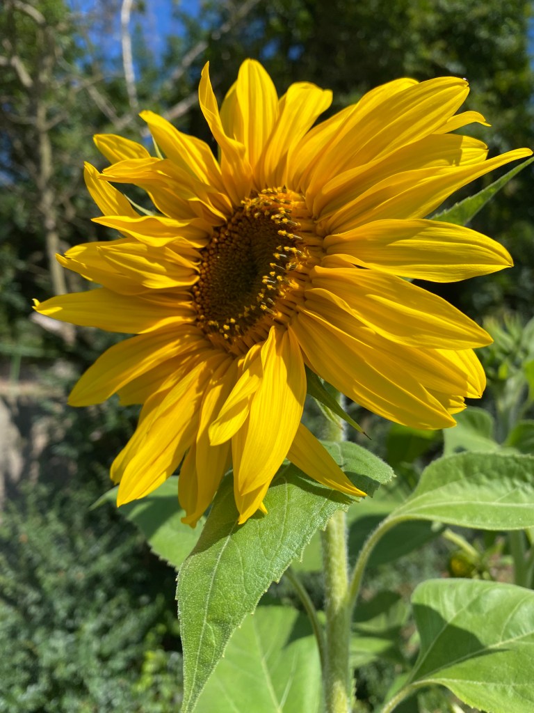 The late sunflowers are doing their best to flower before the season ends, rushing to catch up to the fully-formed, seed-producing lushness of their older siblings, planted much earlier. We smile at them and are parentally proud of their efforts. They have done so well to come so far.