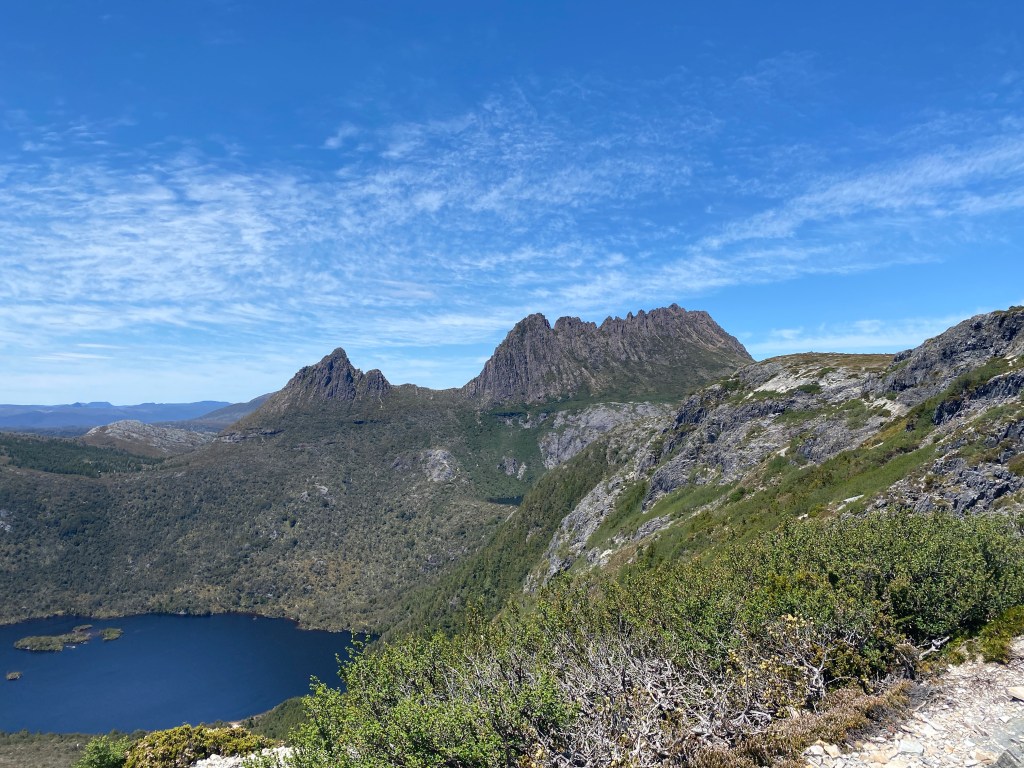 I complained about hiking in the heat and gave Hubby lectures about how I am never again hiking in summer. We sat for a little while in the shade of an emergency shelter, the only shade on the west side of Cradle before the track drops down off the Cirque, making its way down into Waterfall Valley. We talked about the idea of necessary suffering.